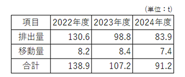 過去3年間の指定化学物質排出量は下表のとおりです。