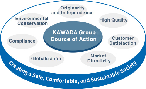 Each company of the KAWADA Group will esteem the respective enterprises' freedom and autonomy under "Group Philosophy," and create the synergy as a new group as well as maximize their respective creativity to realize the goal of progress in the corporate value of the whole Group.